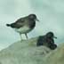 This large and diverse family of shorebirds is made up mostly of northern breeders that migrate long distances. Their highly migratory nature leads them astray fairly frequently, and rarities often show up outside their normal range. Many of these mostly coastal birds forage in relation to the tides, rather than the time of day. They use a variety of foraging techniques, but the most common techniques are picking food from the ground or water, or probing into wet sand or mud. Those that probe generally have sensitive bills that open at the tips. Most members of this group eat small invertebrates. Many make dramatic, aerial display-flights during courtship. Nesting practices vary, but both parents typically help raise the young. Clutch size is usually four, and both parents generally incubate. The young are precocial and leave the nest within a day of the hatching of the last chick. Most feed themselves, although the parents generally tend the young for a varying period of time. The female typically abandons the group first, leaving the male to care for the young until they are independent.